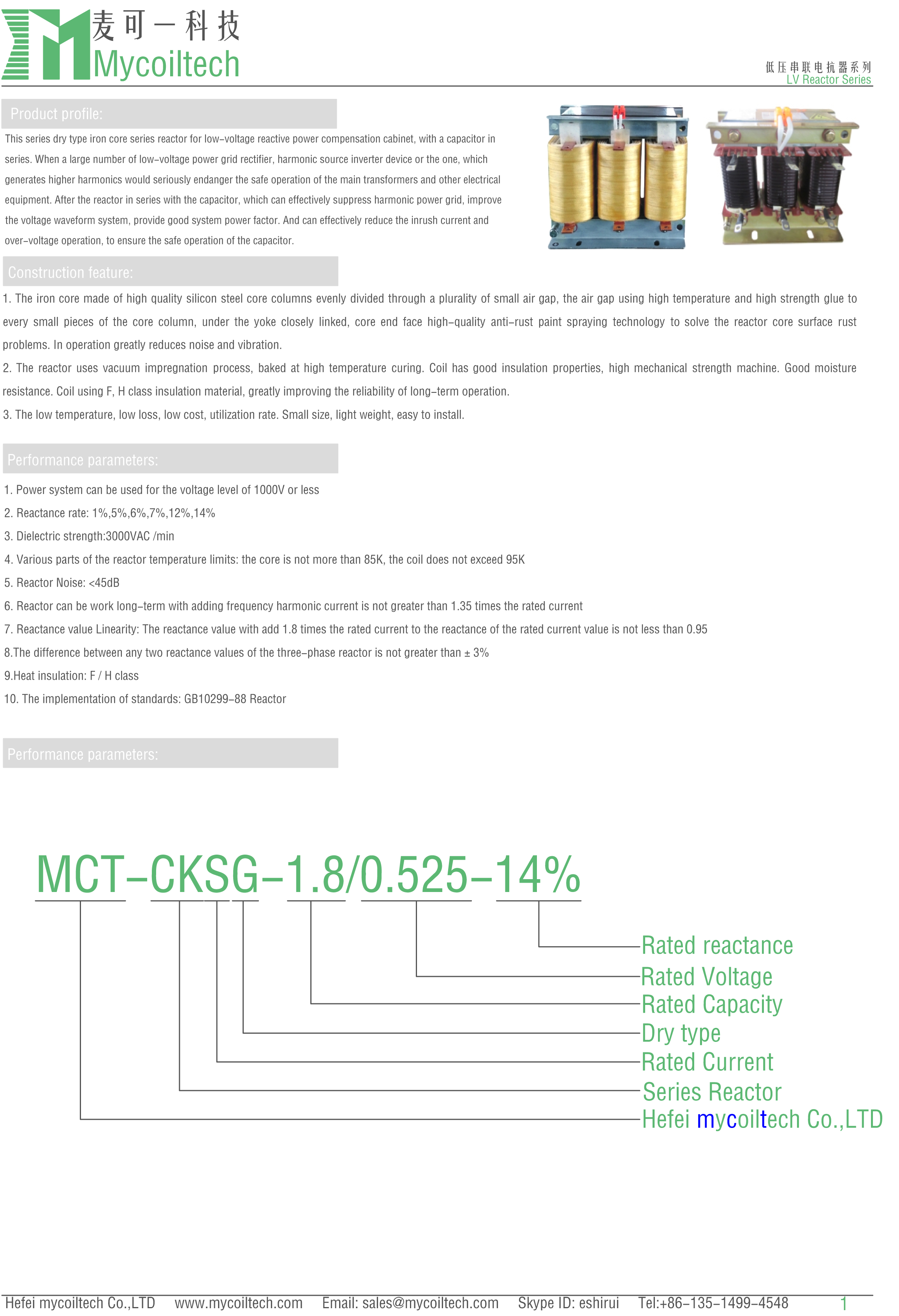 equipment. After the reactor in series with the capacitor, which can effectively suppress harmonic power grid, improve